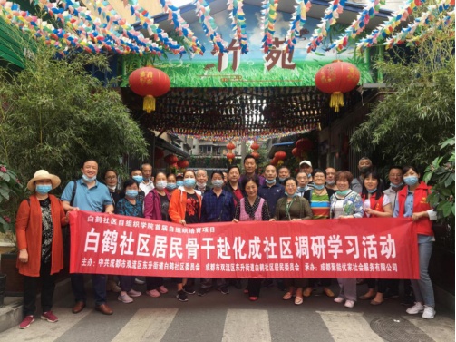 化成社区党委书记罗庆蓉、至善居院委会主任鄢玉群、竹苑院委会主任李红以及化成社区院落居民志愿服务队接待了白鹤社区调研学习小组,白鹤社区参访调研小组先后参访了金牛区“百千万”工程“微幸福”院落位居榜首的化成社区“竹苑”以及化成社区特色院落至善居,通过化成社区骨干志愿者详细介绍,白鹤社区调研学习小组深入了解了化成社区如何落实党建引领发动居民参与,如何充分运用自身资源为院落创收,促进和谐邻里情。