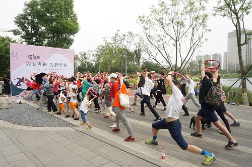 5月20日下午,成都高新区桂溪街道益州社区“无问西东·益家人”国际化社区营造项目之520公益健康跑活动在交子公园举行。一场雨后迎来了凉爽的5·20,辖区院落居民、企业职工、外籍友人约80余人参与了此次活动,一起为爱奔跑。