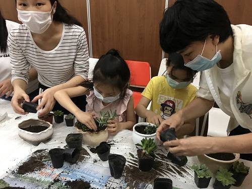 活动当天虽然下着淅淅沥沥的小雨,但也阻挡不了孩子们来参加活动的热情。活动开始,工作人员依次给大家发了盆、多肉、泥土和小石子,接着在工作人员的介绍和指导下,家长们跟孩子们一起动手种植多肉。大家先在盆里装了一大半的泥土,再把多肉栽进去,最后在周边铺上一圈小石子,这样种出来的多肉不仅看着饱满美观,而且可以更好地养护。