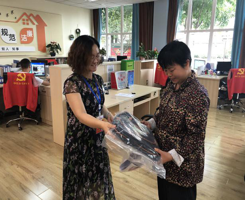 在国内新冠疫情得到积极有效的控制,成都小学全面复学之际,东寺社区计生专干李宗伦为困难儿童送去书包等学习用品,勉励孩子们要克服困难,勤奋学习,做一个有用的人,社区会尽力给予必要的帮助,为家庭解决一些实际困难。家住南新逸苑的宁宁今年12岁,在读小学六年级,父母离异,父亲精神贰级残疾。父子均靠爷爷奶奶照顾,家庭条件困难;同样12岁的喻涛,小学也还没有毕业,母子俩相依为命,母亲为精神叁级残疾,家庭条件十分困难。宁宁奶奶表示非常感谢。喻涛母亲在接过社区赠予儿子的新学期礼物时十分高兴,连连说:“这个书包真好看!”