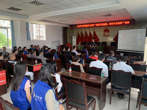 为进一步提升我社区安全稳定,增强辖区企业消防安全意识,社区居民防范和初期火灾应急扑救能力, 5月28日,东寺社区邀请四川防震减灾教育馆唐自豪老师,在社区三楼会议室开展了“中和街道东寺社区‘消除事故隐患、筑牢安全防线’消防安全讲座”,辖区物业工作人员、企业、居民代表、楼栋长、社区网格员和巡逻队共计60余人参加。
