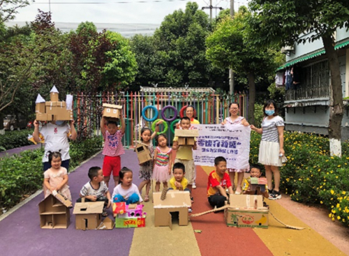 社区邀请到了戈精英作为本次活动的指导老师。戈老师首先向参与家庭讲述了开展环保手工坊活动的意义,并介绍了旧物改造和废物利用的知识。随后,向大家介绍了利用纸箱“搭建”一所纸房子所需的墙、瓦、窗等制作方式以及步骤,让大家按照心中愿望搭建自己的梦想小屋。制作过程中,每个家庭有序分工,大朋友根据小朋友的需要进行构图和裁剪,小朋友完成房屋构图和制作,有的给鸽子也做了一所小房子,有的房子前面建了一所花园等。