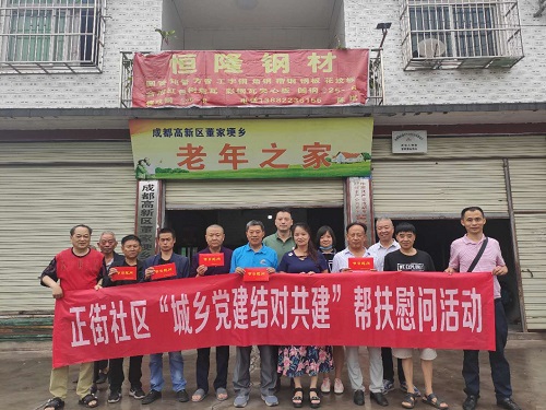 在七一建军节即将到来之际,为持续推进“城乡党建结对共建”工作,6月17日,成都高新区肖家河街道正街社区党委书记郭家英、党委副书记张川一行来到简阳市董家埂镇开展“城乡党建结对共建”帮扶慰问活动。