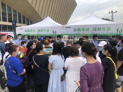 据悉,成都高新区桂溪街道联合三瓦窑派出所、和平派出所、新益州派出所、新会展派出所、成都南车站派出所共同举办的禁毒活动以“健康人生·绿色无毒”为主题,在辖区火车南站、新会展中心、天府四街市政公园、高新青年公寓、环球中心5个点位开展。