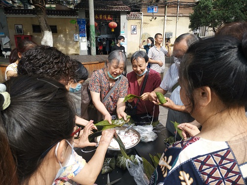 活动开始后,大家热热闹闹齐动手,一片片粽叶和清香的糯米在指尖传递,同时传递了传统孝悌文化和疫情防控期间平安生活的感恩之情。包好的粽子包裹着大家的心意,分送到辖区老年人和院落门卫的手中。(四川社区网 徐曼 肖家河街道供图)