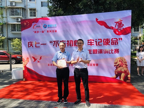 为庆祝中国共产党建党99周年,全面贯彻落实习近平新时代中国特色社会主义思想和党的十九大精神,讴歌新中国的伟大成就,展现新时代的理想信念和积极奋进的精神风貌,6月24日,成都高新区肖家河街道新盛社区举办庆七一“不忘初心,牢记使命”主题演讲比赛。街道党工委书记林昌围,街道党工委副书记、纪工委书记伍文涛,街道社区发展办公室副主任曹录勋以及社区党委书记付毓强,党委副书记赵彦等出席本次活动。