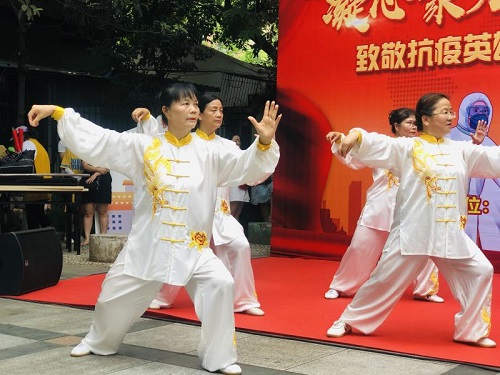 2020年一场无声的灾难,席卷了整个武汉,并在全国各地迅速传播开来。为打赢这场没有硝烟的抗疫战争,各地医生、护士、奋勇向前,主动请愿,驰援武汉,他们舍小家顾大家,无私无畏,逆风前行。为致敬奋斗在抗疫一线的那些可爱可敬的人,成都高新区肖家河街道正街社区于6月29日在阳光家园开展了“凝心聚力·艺起战疫”致敬抗疫英雄七一文艺演出活动。