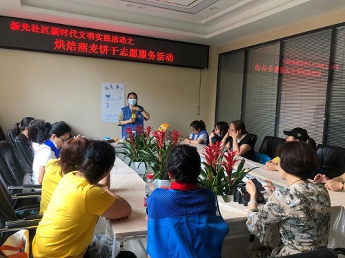 为了丰富社区居民的文化生活,感受烘焙带来的乐趣,提升社区居民的烘焙能力,给社区居民提供平台,增进邻里之间的相互交流,6月30日上午,成都高新区肖家河街道新光社区在二楼会议室开展“点亮新光,与爱同行”志愿服务项目之烘焙燕麦饼干志愿服务活动,活动共有15名社区居民参与。