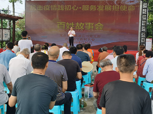 在“抗击疫情践初心·服务发展担使命”百姓故事会活动上,区粮油公司党支部副书记李光忠和宝胜村预备党员谢姗姗分别讲述了在抗击新冠肺炎疫情中的感人故事,熊宏爱岗敬业守护粮食安全、毛晓初将个人生死置之度外为村民拍全家福等感人故事,引起了党员们的强烈共鸣,通过以身边事教育身边人,彰显党员干部先进性,凝聚起了干事创业、助力发展的合力。