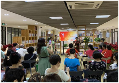 7月1日,由芳草街街道办事处主办的“党在我心中”国学诵读活动在活动中心二楼图书馆举行,来自芳草文体协会国学班的30名学员到场献礼,吸引了辖区居民群众100人参加活动。