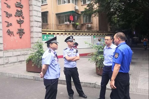 上午,林昌围同志到正街辖区西藏中学对考场环境进行检查,派出所副所长蓝明春、正街社区党委副书记、社区民警陈波对考点附近的交通、考场安排、服务点位等情况进行汇报,林昌围要求相关部门一定要全力配合考生,营造良好的外部环境,确保高考考点的安全、安静、有序。