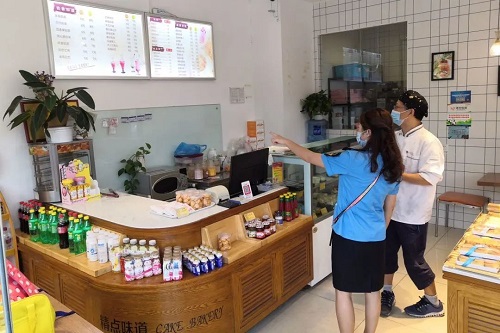肖家河街道市场监管所高考保障工作小组也一早到达两个考点,并第一时间对考点周边的临街商铺进行巡查:一是重点检查餐饮单位是否落实食品安全主体责任,是否落实食品原料进货查验、索证索票制度,是否规范操作加工,是否保持场所卫生,是否做好从业人员健康管理工作;二是检查干杂店、蛋糕店等流通单位是否落实食品安全主体责任,是否存在经营销售过期、腐败变质及“三无”食品等违法违规行为;三是检查文具店是否经营销售作弊器材、假冒伪劣产品及“三无”产品;四是检查考点及周边酒店电梯等特种设备,特种设备维保人员已到达并24小时待命。检查过程中,市场监管所对相关负责人进行了宣传教育,结合高考工作要求和疫情防控,要求各商家诚信经营,维护良好的市场秩序,确保广大考生的食品安全和身体健康。