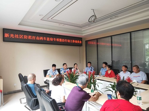 为及时贯彻落实上级会议精神,坚决抑制辖区内“两车”(电瓶车、摩托车)盗窃警情的发生,有效打造多部门协同、群防群治社会立体化治安防控体系,全力维护辖区内社会治安平稳有序,切实增强人民群众的安全感,根据上级文件要求,7月9日下午,成都高新区肖家河街道新光社区联系社区民警,组织辖区物业公司、各院委会主任、巡逻队组长和网格长召开防范打击“两车”盗窃专项整治行动工作动员部署会。