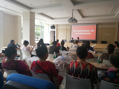 为进一步抓好辖区防邪、禁毒和防骗工作,不断提高居民防邪、拒毒、防骗能力,营造浓厚的防邪、禁毒、防骗宣传氛围,7月9日上午,成都高新区肖家河街道新光社区组织辖区院落楼栋长、商家代表、物业工作人员等50余人在二楼会议室开展禁毒、防邪、防电信诈骗知识宣传培训活动。