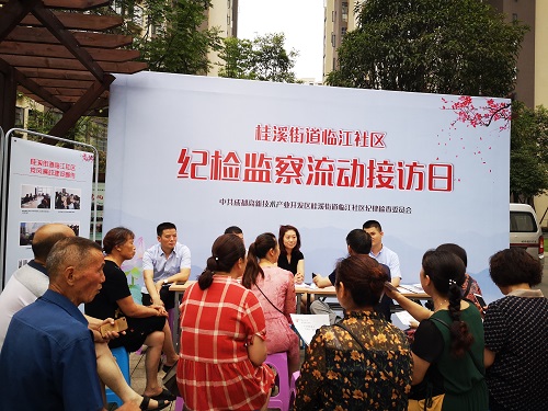 为全面贯彻落实打造开放式纪委监委的部署安排,积极推动解决群众关心的热点难点问题, 7月10日上午,成都高新区桂溪街道临江社区在临江苑东区廉政长廊组织开展纪检监察流动接访暨“廉洁同心”坝坝会,成都高新区纪工委包片驻点临江社区干部潘青龙,临江社区党委副书记、居委会主任王斌及临江社区两委委员参加。