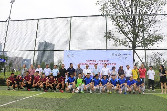 “桂溪辖区党建联盟5人制足球交流赛”启动仪式在成都高新区桂溪街道足球队和成都兴城集团足球队的首场交流赛中拉开帷幕,成都兴城足球俱乐部副总经理兼球队领队、四川足球标志性人物、前国家队主力队员魏群到达现场开球,为赛事助兴,党建联盟成员单位负责人、联络员及11支足球队运动员代表现场观赛。