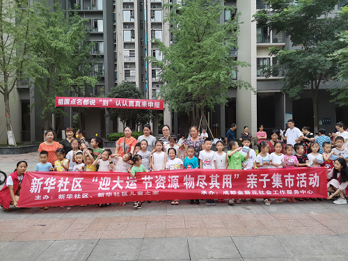 为迎接2021年到来的世界大学生运动会,树立少年儿童从小节约资源的生活习惯,传递共享精神的行为习惯,7月24日上午,中和街道新华社区“迎大运 节资源 物尽其用”跳蚤市场活动,在新怡花园A区小广场开展。