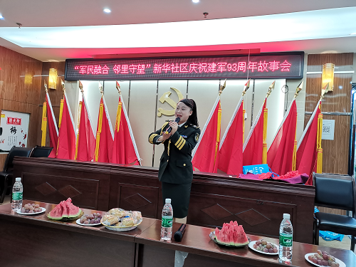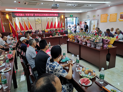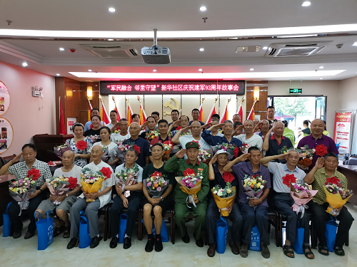 7月29日,高新区中和街道新华社区以党的十九大精神为指导,结合“爱成都 迎大运”的实际要求,在“八一”即将到来之际,高新区中和街道新华社区组织开展了以“军民融合 邻里守望 ”新华社区庆祝建军93周年的故事会,共诉军旅光影,分享红色故事,参加此活动的有退役老兵、军嫂、党员干部、居民代表,共计60余人