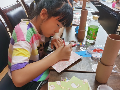 活动中,志愿者老师首先拿了一个做好的万花筒给小朋友观看,问小朋友有没有知道万花筒的原理,小朋友们的回答五花八门,志愿者老师拿着制作万花筒的材料,向他们解释万花筒的基本原理和制作步骤,经过半个多小时的拼装以及上色,美丽的万花筒便在大家的巧手下诞生了,大家迫不及待地拿起万花筒看看五光十色的世界,小朋友们纷纷惊呼“好漂亮呀,真神奇!原来万花筒如此简单。”活动最后,孩子们分享着手工成果,一起合影留念。