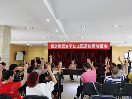 2020年7月30日上午,成都高新区桂溪街道昆华社区组织25号院居民代表召开院落改造听证会。此次会议有40余人参加。
