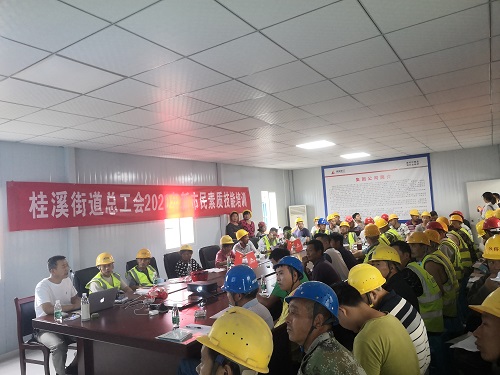 2020年7月29日至30日,成都高新区桂溪街道总工会在和平社区、天府五街菁蓉汇及科创社区组织开展了“新市民”素质技能培训活动,其中在科创社区高新区养老助残中心工地组织开展的“新市民”素质教育培训为农民工专场,本次活动共计有300余名居民和工人参加。