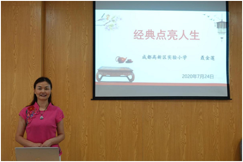 接下来,紫薇社区居民、高新区人大代表、高新区实验小学语文教师聂金莲为大家做了题为《经典点亮人生》的讲座。在讲座中,聂老师从“经”“典”两个汉字的甲骨文字形入手,给我们讲清了什么叫“国学经典”。在阅读书籍上聂老师推荐了适合了成人和小朋友读的几本经典——《论语》《大学》《中庸》《道德经》《易经》等典籍。