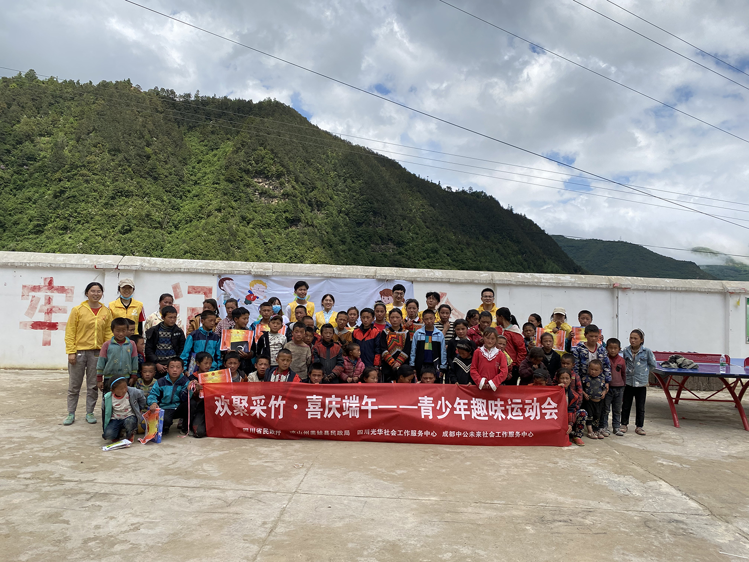 由成都中公未来社会工作服务中心牵头,社会志愿者共同组建的志愿服务队响应《边远贫困地区、边疆民族地区和革命老区人才支持计划》,多次踏入这片充满原始魅力的土地,在当地党委、政府、驻村干部、社会工作者、全体村民的共同努力下,我们将一个个的不可能变为现实——就像这一次的“欢聚采竹·喜庆端午”趣味运动会。
