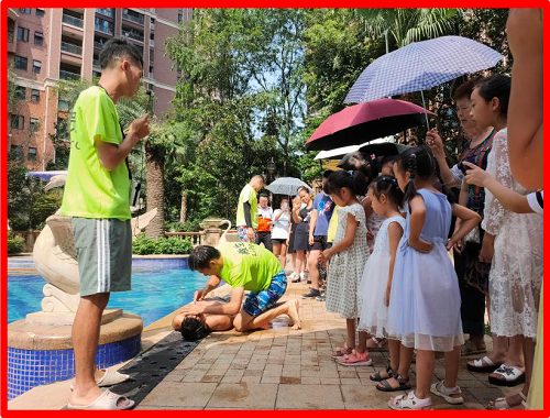 针对夏季儿童溺水事故高发情况,为了让孩子们增进对防溺水知识的了解,8月4日下午,社区组织孩子们与家长到社区中德英伦游泳馆进行防溺水安全演练。活动现场救生员给大家现场演练溺水时自救及救援的方法,大家都聚精会神的听着。