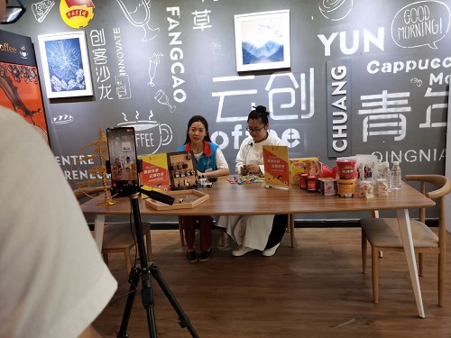 7月28日下午,成都高新区创瑞街6号云创青年大厅热闹非凡,创业者齐聚一堂,信心满满,力争在随后的直播期间,拿出积极向上的态度,朴实无华的语言,将自身质地优良的产品在第一时间推介至芳草辖区,甚至整个成都市场,从而打响芳草草根创业复苏第一枪。销售产品从辖区农业产品、纯手工制作的木艺、扎染到日常的衣食住行等都有涵盖,也说明了集市产品的多样性。