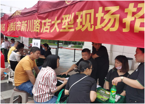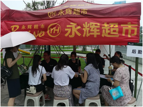 为进一步推进就业工作,密切社区与企业之间的沟通与联系,帮助辖区居民适应不断发展的城市化进程,助力居民家门口就业,解决居民就业难,企业招工难等问题,会龙社区于2020年8月7日举办了以党建引领“社企联动 贴心送岗”为主题的永辉超市专场招聘活动。