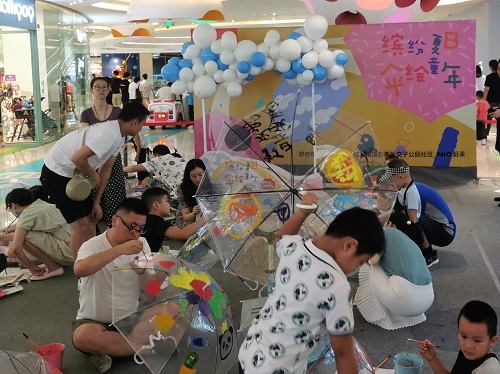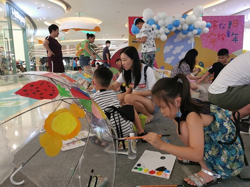 为丰富少年儿童暑期文化生活,弘扬良好家教家风,推进社区新时代文明实践建设,近日,成都高新区桂溪街道交子公园社区联合银泰in99、蔚来汽车共同开展了“缤纷夏日 伞绘童年”亲子绘伞活动。