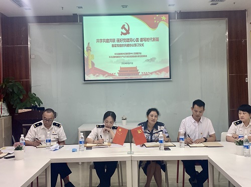 随后,魏尤年和贺平签订了基层党组织共建协议。贺平介绍了海关后管中心党支部的基本情况和党建特色亮点工作,并就如何做好结对共建、如何发挥好党员带头作用等方面发表了意见和看法,表达了党建结对共建后的愿景,希望加强沟通、共谋发展,推动党建引领助力社区治理工作提质增效。