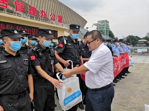 2020年8月21日下午,桂溪街道总工会分别到和平广场和火车南站开展了慰问活动,慰问了辖区环卫工人、绿化工人、公安民警和巡逻队伍等高温一线职工代表100余人。桂溪街道党工委副书记、纪工委书记、总工会主席刘大勇,桂溪街道办事处调研员、总工会副主席瞿蓉芳一行将党和政府的关怀送给了奋战在高温一线的职工,为他们送去了“清凉健康包”,并向他们表示了亲切的关心和问候。