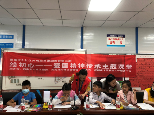 为加强社区爱国主义教育,丰富社区青少年学习党和国家历史进程的形式,7月31日早上9点,由西南交大社区党委、西南交大社区居委会主办,成都市大同社会工作服务中心承办的红色教育系列活动第二讲:绘初心——爱国精神传承主题课堂在棚改处会议室开课。西南交大社区各党支部书记、西南交大社区积极党员、社区青少年及其家长参与本次活动。