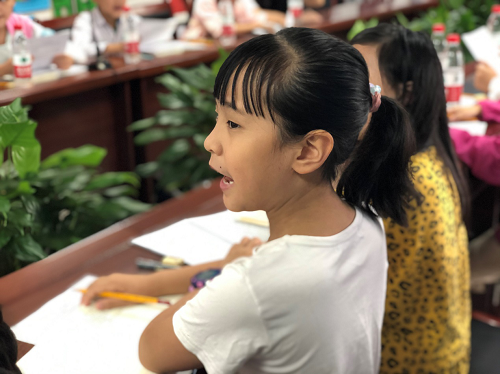 第二个环节,钟伟老师为孩子们介绍了少先队徽、党徽、国徽、五星红旗的图形元素,告诉大家每个元素的重要意义,引导孩子们熟悉元素。