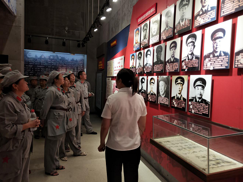 接着,全体人员向革命烈士敬献花篮,摘帽默哀,缅怀革命先烈。在新华社区党委第一书记成立志同志的领誓下,全体党员同志们重温了入党誓词,更加坚定了对党忠诚的决心。随后,在讲解员的带领下,大家参观了红军长征纪念馆,聆听革命先烈的英雄事迹,大量陈列的文字、图片及红军曾用过的号角、服装,让大家直观感受到中国共产党为建立新中国而勇于牺牲的革命精神。下午,全体人员分成两个班,开展了竞争激烈的红色密码、打土豪分田地的团队拓展游戏,记忆力较强的二班成员一开始就拔得头筹,最后取得了游戏的最终胜利,活动结束后,成书记鼓励大家,将游戏中展现出的活力以及拼劲运用到将来的工作中去,解决工作中遇到的问题。居民们纷纷表示,革命的年代虽然过去,但红军长征的精神依然激励自己要努力为中华民族伟大复兴奋斗不息,今后要更加积极地参与社区建设,发挥自身能动性,共建美好社区。