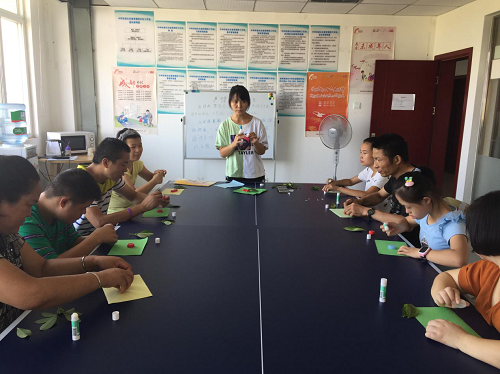 本次活动内容本着以“环保性、节约性、安全性、创新性”为宗旨,所以社区提倡比较常见的废旧瓶盖来制作手工。活动开始之后,老师把所需的制作材料:如瓶盖、剪刀、卡纸、树叶等依次发给每个学员。同时为了让学员们都能了解活动内容,老师利用教学视频把“瓶盖制作小鸟”的步骤展示给学员们看,为接下来的手工制作奠定基础。首先,拿出二个瓶盖来当作小鸟的头和身体,用胶棒将其固定在纸上;接着用卡纸剪出小鸟的嘴、脚和眼睛,再用胶棒粘贴到相应位置;小鸟的尾巴就用树叶代替。学员们按照老师讲解的方法一步一步的认真制作,对于动手能力稍弱的学员,老师也从旁进行指导与协助,务必让每个学员都能完成手工作品。