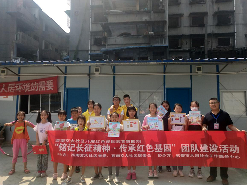 8月28日早上九点,由金牛区九里堤街道西南交大社区党委、社区居委会主办,成都市大同社会工作服务中心承办的“红色课堂第四讲—铭记长征精神·传承红色基因”团队建设活动在棚改办正式开展。活动旨在发动社区党组织力量,对社区青少年进行爱国知识教育,培养社区青少年爱党爱国精神。