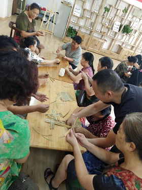 社区邀请了专业的竹编老师为大家讲解,亲手教大家编织。在老师的编织示范教学下,参加活动的居民朋友开始了手工编织。大家一边看老师的示范动作、一边用竹片动手编织。两位老师也巡场式的逐个的进行耐心指导,渐渐的越来越多的人学会了。看着竹片一根根编制成型,大家都露出了富有成就感的笑容。在这个过程中大家感受到了非遗文化的魅力,也感叹到非遗手工精妙技艺和非遗传承人们精湛的技术,经过一个半小时的认真制作和老师帮助下的收尾,一件件竹编非遗艺术品诞生了,大家禁不住拍照留恋。