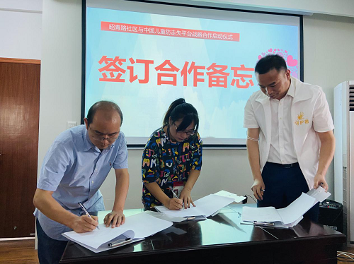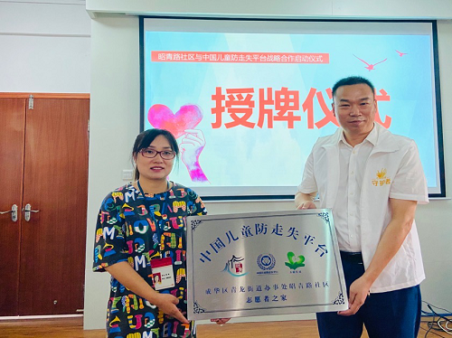 9月8日,成华区青龙街道昭青路社区与中国儿童防走失平台及玉成志愿服务与研究中心战略合作计划正式启动。三方签署了战略合作协议,成立了成都市第一个社区儿童守护者志愿者之家,组建了成都市第一支儿童守护者志愿服务队伍,旨在呼吁昭青路社区所有的家长及关注少年儿童安全的爱心人士、志愿者、社会组织、政府相关职能部门和企事业单位积极参与到关注少年儿童安全的公益事业中来,共同守护孩子们的安全,共建儿童安全社区。