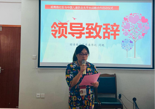 在启动仪式上,青龙街道团工委书记邱丽嘉向现场的志愿者们阐述了孩子丢失给整个家庭带来的伤害,号召大家积极参与儿童防走失志愿服务活动,积极成为守护者志愿者,让爱传递,守护每一个家庭,守护每一个孩子。