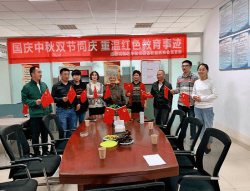 在支部会议室,支部党员、退休老党员高举鲜艳的五星红旗、排列队形,在所有人激情高亢的歌声中,一首《歌唱祖国》大合唱开启了这次庆祝活动。