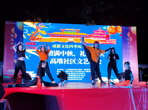 9月26日晚7点,由大丰街道高堆社区党委、居民委员会主办,成都市青白江区至善社会工作服务中心承办、大丰街道综合文化活动中心,大丰街道高堆社区老年协会,大丰街道高堆社区关工委,大丰街道高堆社区妇联协办的“爱成都.迎大运”成都文化四季风欢歌庆秋“情满中秋,礼赞国庆”高堆社区文艺晚会在高堆社区日间照料中心篮球场展开,与高堆社区的居民们一同喜迎国庆、共贺中秋!从本次文艺汇演共10余单位参演、500余社区居民参加。