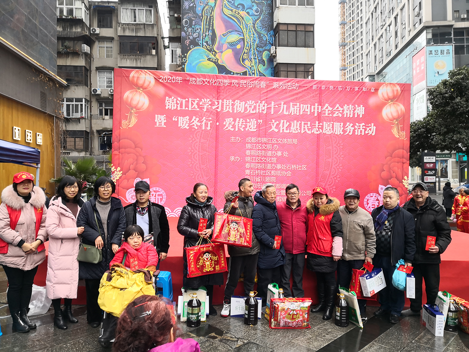 1月15日,为庆祝新春佳节,成都市锦江区青石桥社区联合锦江区文化馆,共同开展了锦江区学习贯彻党的十九届四中全会精神暨“暖冬行·爱传递”文化惠民志愿服务活动,丰富居民文化生活,喜迎新春佳节。