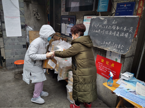 “嬢嬢,这是奖励你的大米哈,还是要少出门哦。”在成都市蓓蕾社区玉虹巷1号院居民正戴着口罩分批领取大米。记者了解到,这些大米是玉虹巷1号院为奖励春节以来没有外出串门并且按照要求佩戴口罩、进出门测量体温的83户家庭专门购买的。