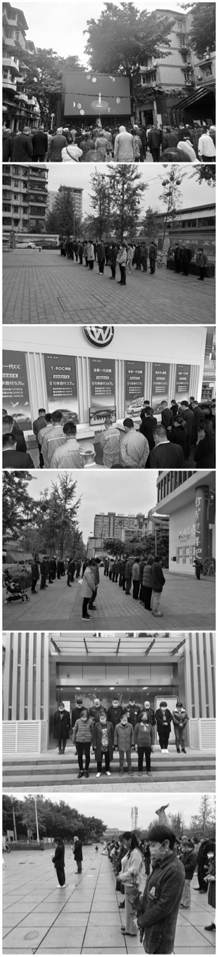 上午10点,辖区内升挂国旗场所降半旗,汽车鸣笛,防空警报拉响,各社区纷纷举行默哀仪式,集体默哀,深切哀悼在此次抗击新冠肺炎疫情斗争中牺牲的烈士和逝世的同胞,用最沉重的方式表达对生命的敬重,缅怀逝者,致敬英雄。(四川社区网 杨岚 肖家河街道供图)