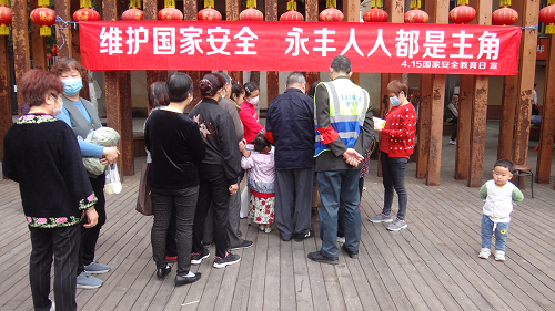此次活动,一方面通过组织社区工作人员重新学习《国家安全法》《反恐怖主义法》《网络安全法》等法律法规知识,提升工作人员国家意识,自觉维护国家安全;一方面结合当前疫情防控形势,在永丰广场向居民发放宣传资料,增强居民国家安全意识。