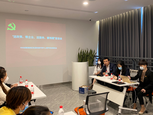 4月16日下午,成都高新区桂溪街道环球中心楼宇综合党委召开“送政策、帮企业、送服务、解难题”座谈会。桂溪街道退役军人服务站副站长顾一哲、益州社区党委副书记胡颖、环球中心楼宇综合党委书记颜波、副书记何理,环球中心楼宇内壹玖壹玖酒类平台科技有限公司、四川明炬律师事务所、四川德羽后勤公司、超宇集团有限公司等12家企业代表参会。