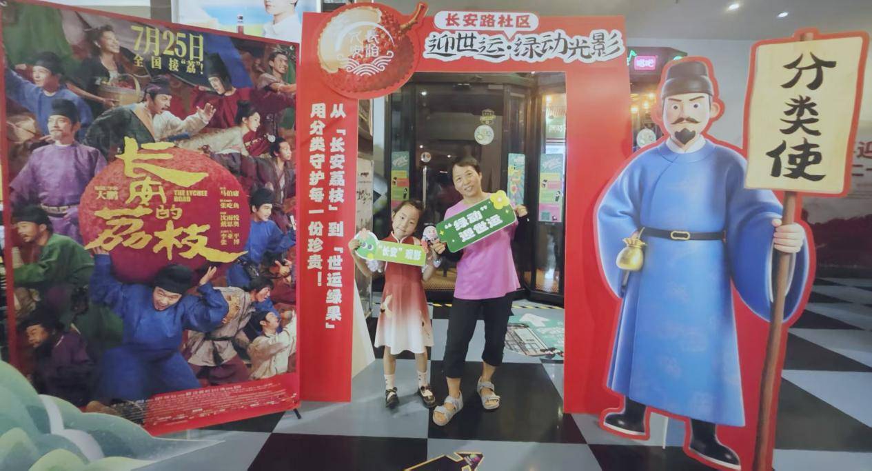 活动巧妙挖掘社区名称“长安”与热映影片《长安的荔枝》的文化联结,以 “从‘长安荔枝’到‘世运绿果’,用分类守护每一份珍贵!” 为宣传核心,构建了一条独特的绿色叙事主线。影片中古人珍视荔枝传递的情谊,映射今日守护“世运绿果”(地球资源)的责任——社区通过这一创意对比,深刻揭示了环保理念从古至今的传承与科技赋能下的进化。现场,居民在光影中感受古今对“珍贵之物”的守护初心,环保意识悄然升华。