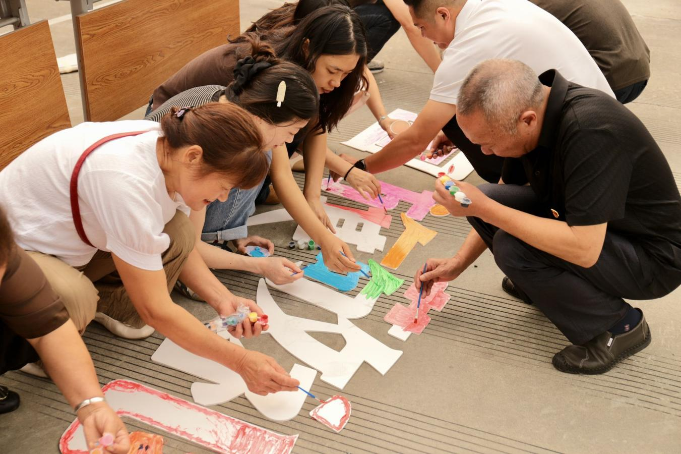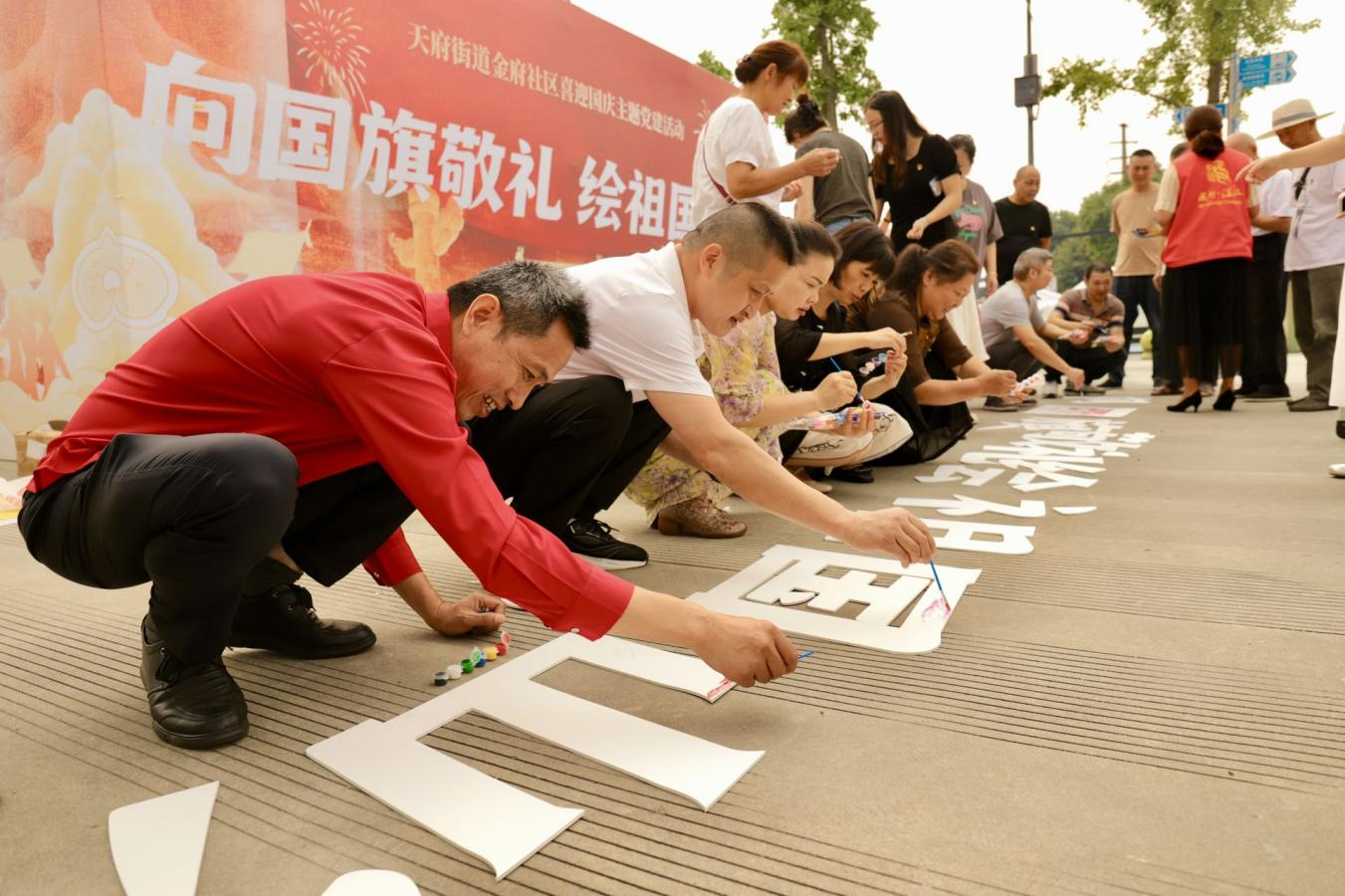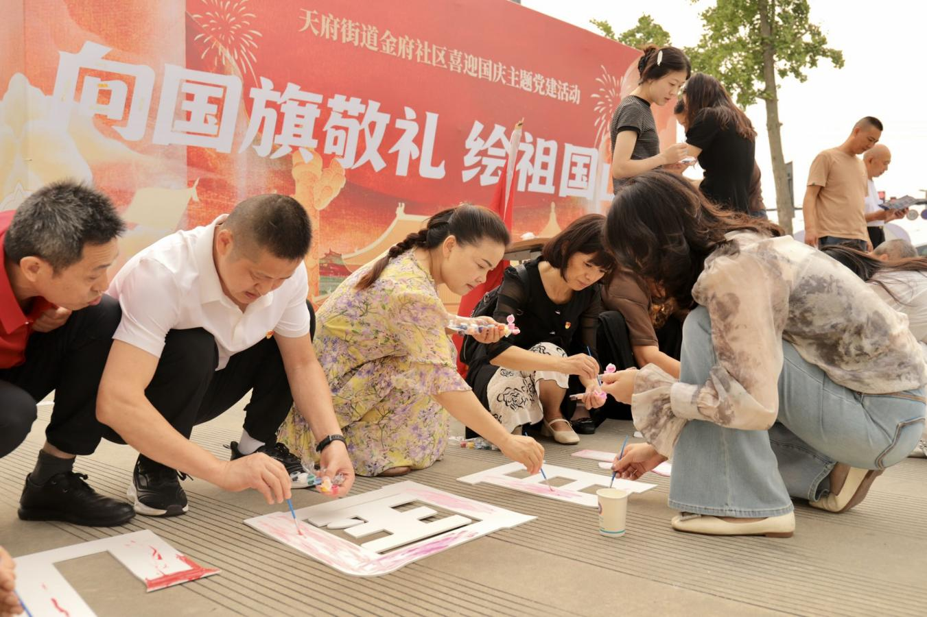 活动当天还有“献礼国庆・长卷画绘制” 环节,工作人员提前准备了空白画板、各色颜料与画笔,以“手绘长卷颂祖国”为主题,邀请党员们共同参与创作。党员们分工协作、默契配合,用鲜艳色彩传递节日喜悦。经过大家的共同创作,一幅承载着党员们心意的“向国旗敬礼 绘祖国山河” 长卷完整呈现,斑斓色彩间,既有对祖国的赞颂,更饱含着对未来的美好期许。